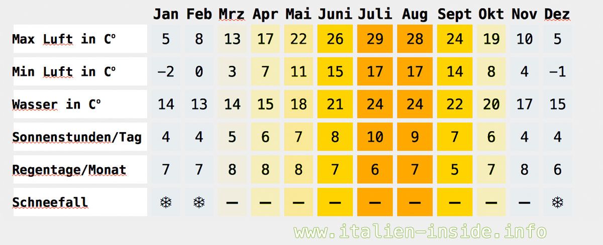 Wer nach Ligurien reist, möchte natürlich wissen, wann die beste Reisezeit ist und wie warm das Meer wird.
